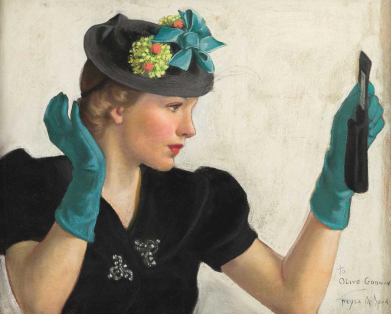 The December 2021 sale also included a record-breaking sale of Neysa McMein’s Looking Into the Mirror, a 1938 cover for Woman’s Home Companion, which sold for $16,250. The work is quintessential McMein, Von der Linn said, showcasing her ability to capture young women during the early-to-mid twentieth century.