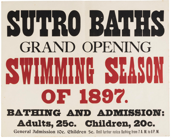 Advertising poster for San Francisco's Sutro Baths, offered at PBA Galleries this week.