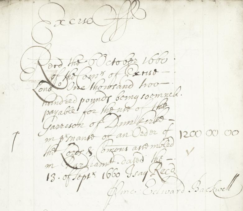 This ledger which covers the period August - March 1660 shows Backwell administering the finances of the Excise which collected duty on home-produced goods such as alcohol and imported commodities e.g. tobacco. Essentially, this involved paying the salaries and expenses of tax-collectors, making Backwell the HMRC of his day.