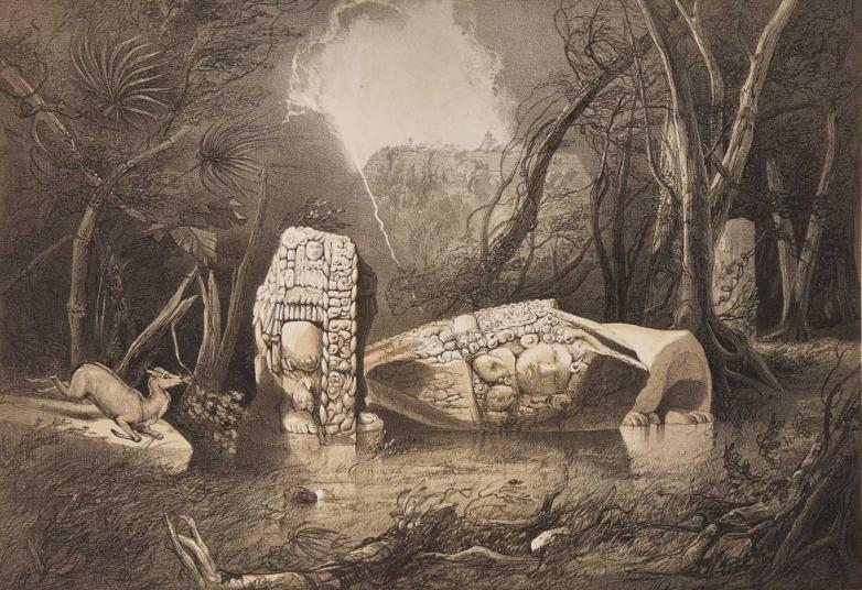 Tinted lithographic plate from Frederick Catherwood's Views of the Ancient Monuments in Central America, Chiapas and Yucatan (1844), offered at Freeman's this week.