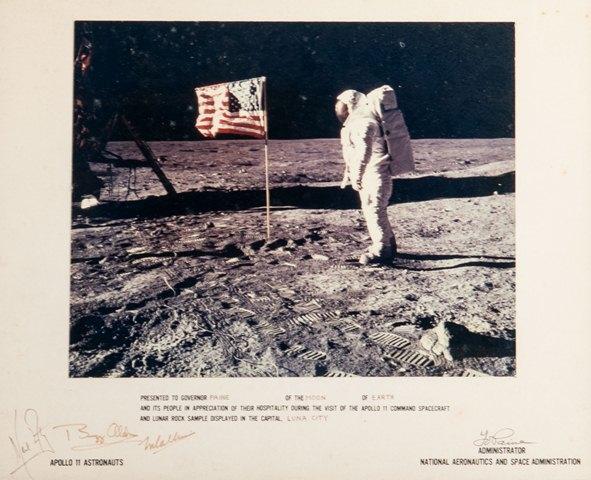 •    Framed photograph “Man on the Moon” signed by Apollo 11 astronauts Neil Armstrong, Buzz Aldrin and Michael Collins ($2,000-3,000)