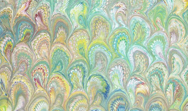 The practice had made its way to sixteenth-century Europe by way of China, Japan, and the Middle East. With the ornamental papers the subject of art lust and steely competition among bookbinders and booksellers, master marblers shielded prying eyes by working in locked rooms, often late at night, in a manner that often left the apprentices themselves in the dark about the every-step-ism of the process. It wasn’t until Londoner Charles W. Woolnough had the audacity to publish The Whole Art of Marbling as Applied to Paper, Book Edges, etc. in 1881 that unguilded artists had the chance to have marbling fun on their own.