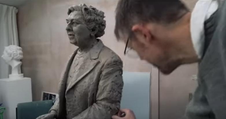 Sculptor Ben Twiston-Davies at work on the Agatha Christie statue