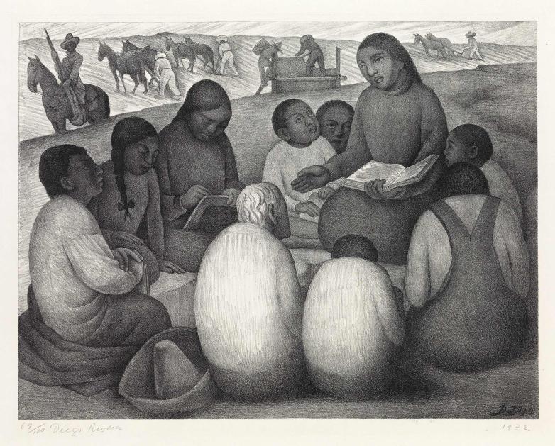 Diego Rivera, Escuela al Aire Libre, lithograph, 1932. Estimate $12,000 to $18,000.