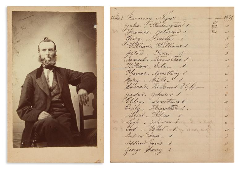 Shugart family papers including documentation of the Underground Railroad, 63 items, 1838-81. Estimate $30,000 to $40,000.