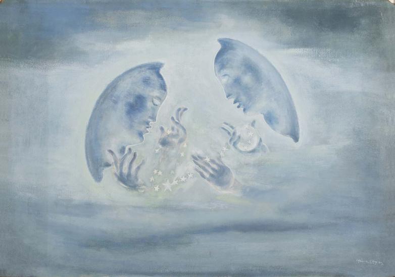 Mina Loy, Moons I, 1932, mixed media on board, 26 1/4 x 35 1/4 in. (66.68 x 89.54 cm). Private collection.