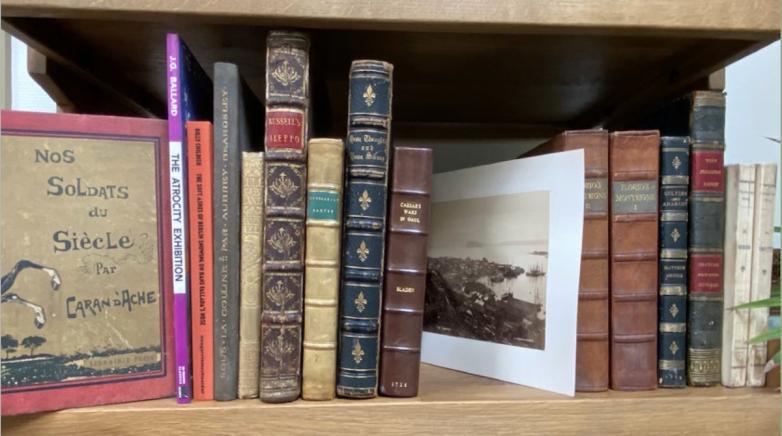 We have presented three shelves of books, and a “picture wall” with no titles or descriptions in the catalogue. Instead, a prospective buyer will need to hover over a book on the shelf — to see what it is — and click through if they wish to read more about it. Far closer to the physical sensation of popping into our book room and selecting a book yourself.