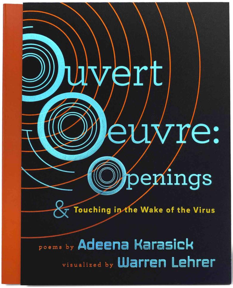 The book is produced in a smyth-sewn, three-color foil stamped, three-piece hardcover binding, printed on acid-free paper. "Ouvert Oeuvre: Openings bridges the gap between art book and trade publication that will speak to lovers of poetry, philosophy, art, design, new media, performance," says Lehrer, "and anyone trying to navigate opening and touching in the wake of pandemics and other mass maladies."