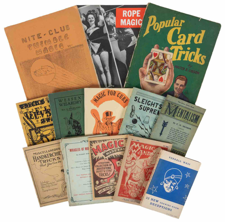 Approximately 100 thin magic booklets and two boxes of lecture notes, spanning the 20th century in English, predominantly published in Great Britain and the United States
