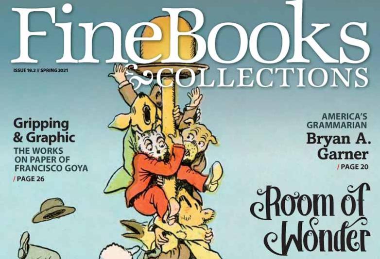 Like you, we’ve made it through this pandemic year by sheltering at home with our books, attending virtual book fairs, and Zooming with colleagues and friends. We’ve also continued to cover the world of collecting both online and in print, and we think you’ll be pleased with our latest production: the spring 2021 issue, featuring a profile of America’s grammarian, Bryan A. Garner, and a look at Francisco Goya’s works on paper, now on exhibit at the Met.