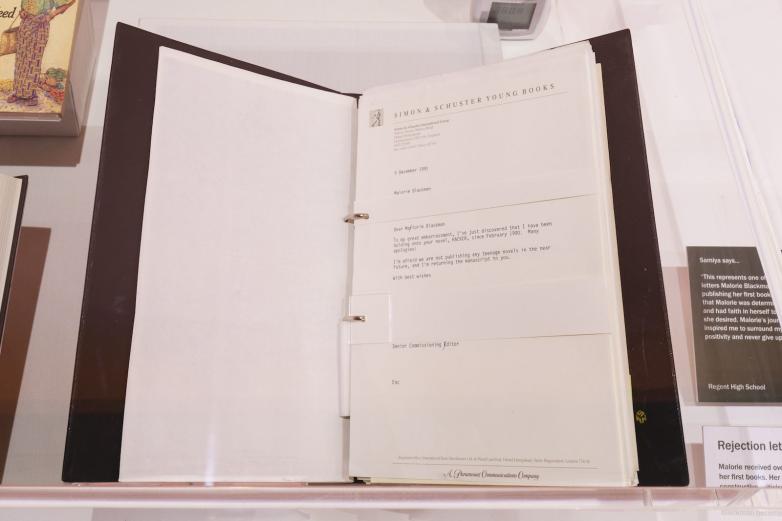 - a ring binder of over 80 rejection letters Blackman received from publishers, on public display for the first time