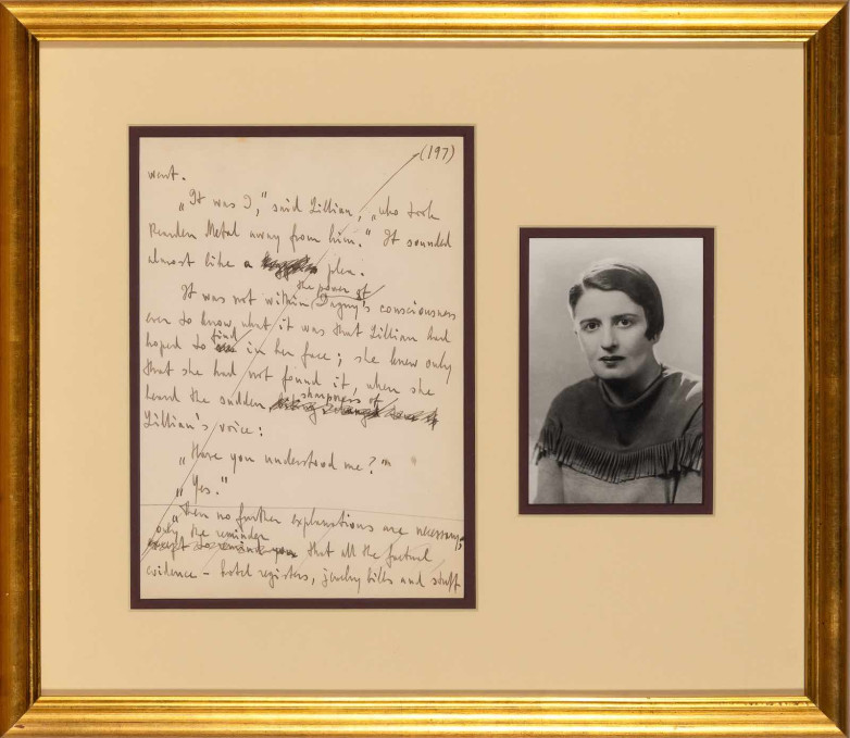 Probably dating to 1951, the 16 lines are written in fountain-pen ink by Rand with several corrections also in her hand. The lot has an estimate of $30,000 - $50,000 and includes a reproduction of the portrait of Rand that features on the dust jacket of the book.