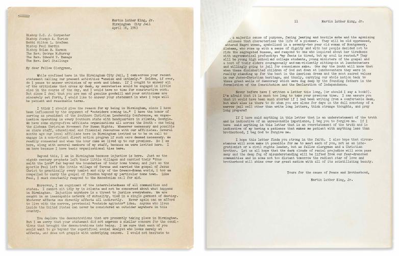 Dr. Martin Luther King, Jr., an early draft of the Letter from Birmingham Jail, 1963. Estimate: $15,000-25,000
