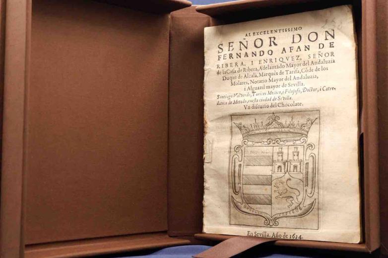 Only three copies of the book printed in 1624 are known to have survived. It features some of the oldest known chocolate recipes and explores the nature of chocolate, then regarded mainly as a drug or medication.