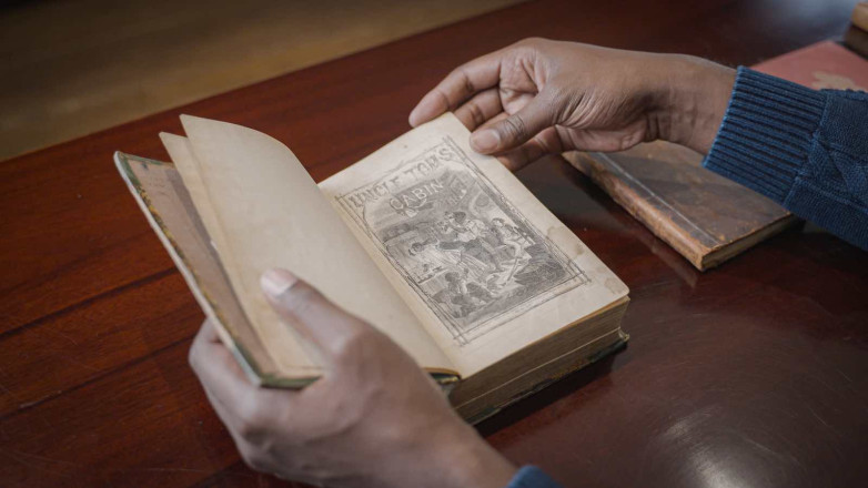 Jonathan Michael Square browses Uncle Tom's Cabin