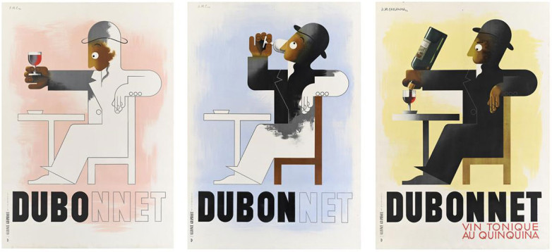 Adolphe Mouron Cassandre's 1932 triptych poster design for Dubonnet, offered at Swan Galleries this week.