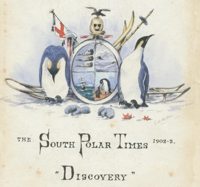 In another attempt to keep morale high, Shackleton produced and edited a newspaper, the South Polar Times. The expedition's zoologist and junior surgeon, Edward Wilson, contributed most of the illustrations, and a watercolour design of a polar coat of arms is also offered in the sale. Estimate: £4,000-6,000.