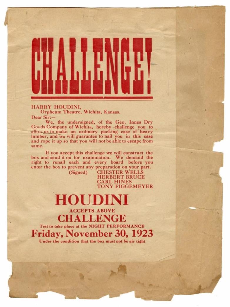 Houdini “Challenge” letterpress handbill realized $8,400.