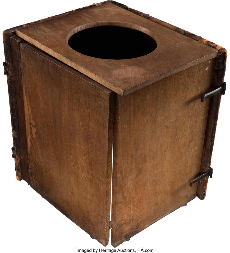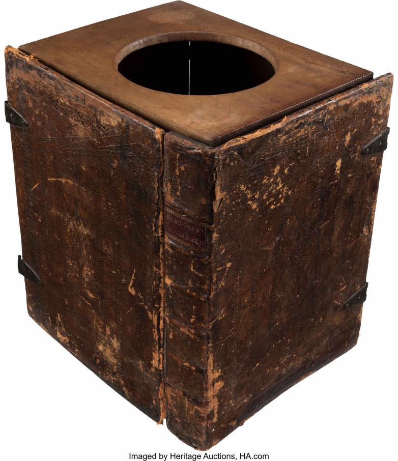 “All bathroom humor aside, surviving examples of these book commodes are actually quite rare. This example remains in functional condition with some wear to the exterior leather covering and thankfully little or no sign of wear to the interior,” according to Heritage Auctions.