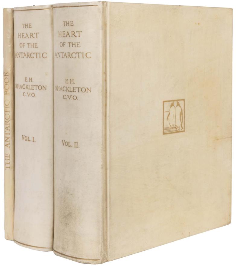 Lot #195, Ernest H. Shackleton's The Heart of the Antarctic, Being the Story of the British Antarctic Expedition of 1907-1909 and The Antarctic Book. Winter Quarters 1907-1909