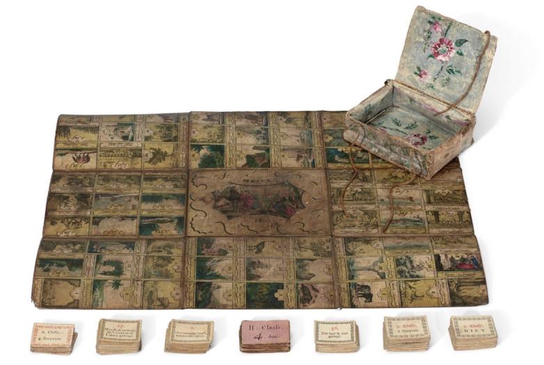 The game, in its original paper-covered box, is a rarity. Sotheby’s says it has been “unable to trace another example.”