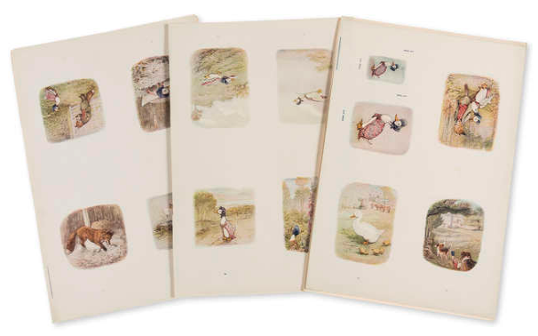 Uncut proof sheets of illustrations for Beatrix Potter's Jemima Puddle Duck, offered at Forum Auctions this week.