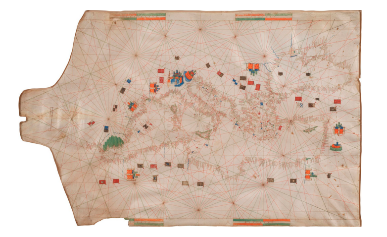 Illuminated portolan chart of the Mediterranean by Petrus Roselli (1447), offered at Sotheby's London on December 9.
