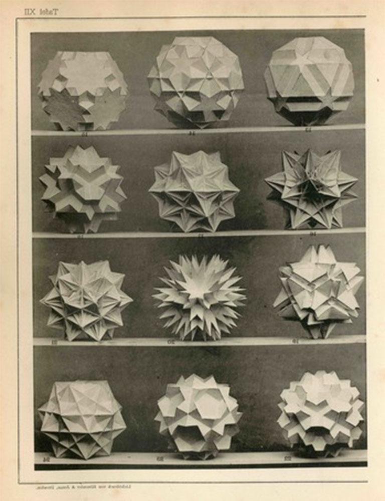 Daryl: It's hard to choose, but the book which embodies Thinking 3D the most is probably Kepler's Mysterium Cosmographicum. In grappling with understanding the relational distance between heavenly bodies, Kepler applied the five platonic solids and their relationship to each other to explain what his calculations found. The illustration that he devised has been seen regularly and is a fantastic example of applying the geometrical lens to the wider world. However, for this exhibition we also wanted to see if we could actually bring Kepler's model to life.