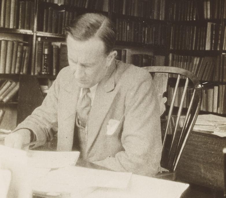 J.R.R. Tolkien at his desk, Oxford, 1937.