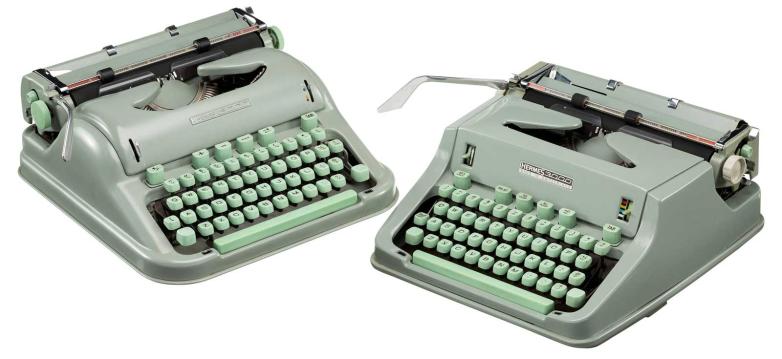 The Swiss-made Hermes 3000 is one of the world's finest typewriter models and the instrument of choice for thousands of writers. It was introduced in 1958 and was noted for its simplicity and ease of maintenance. The pair on offer is dated between 1963 and 1970 with pale green bodies and keys. Each has its original case and exhibits only light scuffs and handling marks. McMurtry stationed one at his home in Archer City, Texas, and the other in Washington, D.C., while writing Lonesome Dove. McMurtry still uses a Hermes 3000, writing five pages every day to avoid "the empty well."