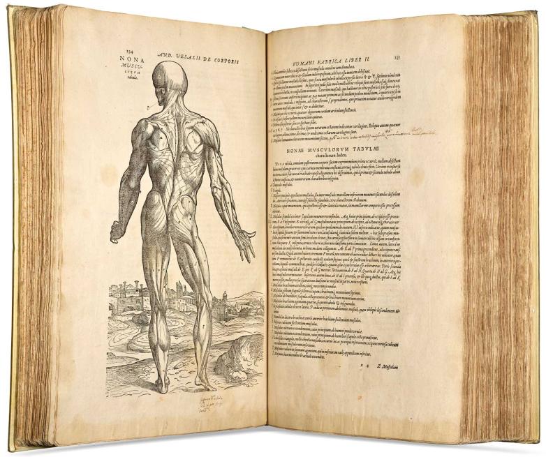 Vesalius' annotated working copy of the 1555 second edition of his De Humani Corporis Fabrica, offered at Christie's this week.