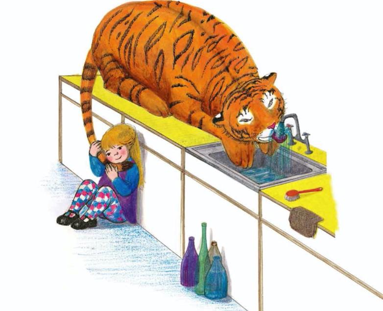 Illustration from Judith Kerr's 1968 picture book, The Tiger Who Came to Tea.