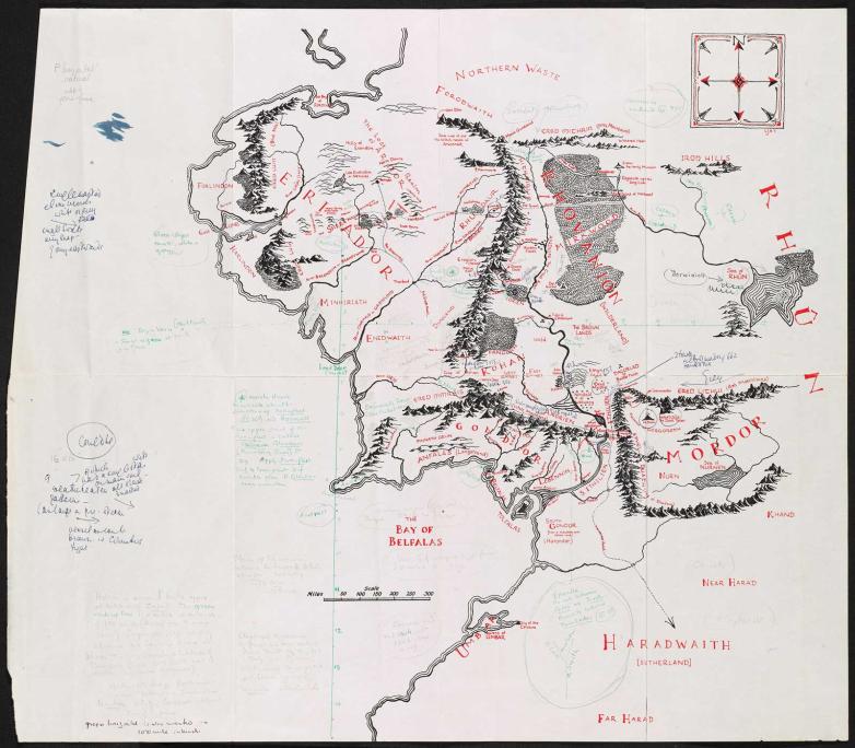 For fifteen years, McIlwaine has had the dream job for a Tolkien fan: Tolkien Archivist, charged with sorting through an archive of papers, manuscripts, artwork, letters, objects, and assorted ephemera related to the Oxford don and creator of arguably the most beloved fantasy series of all time. For the last five of those years, she has been preparing for the Bodleian’s monumental survey of his work, Tolkien: Maker of Middle-earth, the first exhibition dedicated specifically to Tolkien in twenty-six years at the library, and the first time since Tolkien sold The Lord of the Rings manuscripts to Marquette University in Milwaukee, Wisconsin, that they have returned to England.