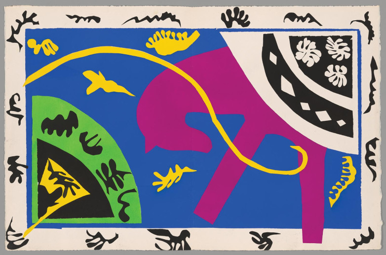 Although Matisse and Tériade collaborated both before and after Jazz, it is singular in that the words and images are all from Matisse’s hand. “Jazz is Matisse at his most personal and vulnerable. Both the images and the text convey an intimate side of Matisse, one that he usually kept safeguarded from the public,” said Emily Ziemba, director of curatorial administration and research curator for prints and drawings at AIC. “Jazz endures because it is multilayered. With symbols of war and loss, it can be read as a book of quiet resistance,” observed Ziemba, “but with the vivid colors and the seemingly happy scenes they depict, Jazz illustrates our universal need to reach for happiness during times of uncertainty, anxiety, or chaos.”