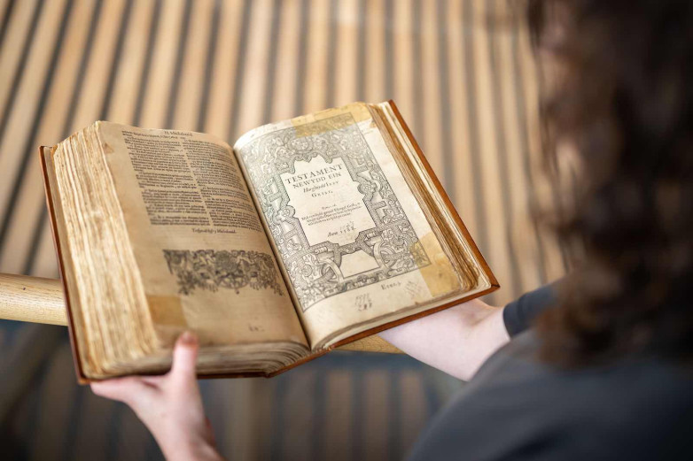 Alongside the 1588 Bible, the exhibition features a collection of Bibles donated from across the world, including the La Sankta Biblio written in Esperanto, a Basque Bible Elizen arteko biblia, plus Ibhayibheli Elingcwele in iZulu and Orin Dafidi in Yoruba.