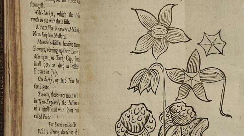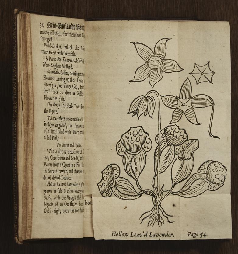 In the 17th century, as part of the “scientific revolution,” Europeans developed a strong interest in trying to understand their natural environments. The rare books on display, including William Wood’s New England’s Prospect (1635)—one of the earliest accounts of the Massachusetts Bay Colony—represent some of the first attempts by Europeans to describe the geography, geology, topology, and biology of North America. They also show how natural history went beyond just scientific inquiry.