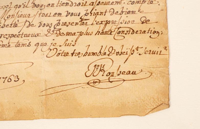 The letter by 18th century Swiss philosopher, composer, author and political theorist Jean-Jacques Rousseau (1712-1778) was discovered when it was brought into the auctioneers on a routine valuation day. The owner had no idea who it was written to or by.